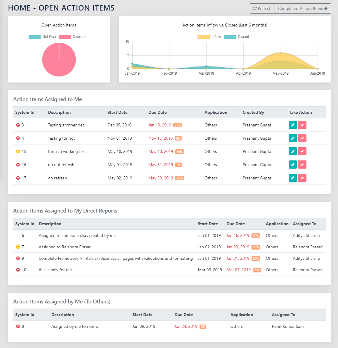 - Action items that are “Assigned to me”, as shown in Figure 116: Self and Direct Reports All Action items.