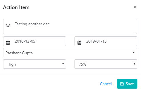 - Priority- Select from High/Medium/Low – option to select Action Item Priority.