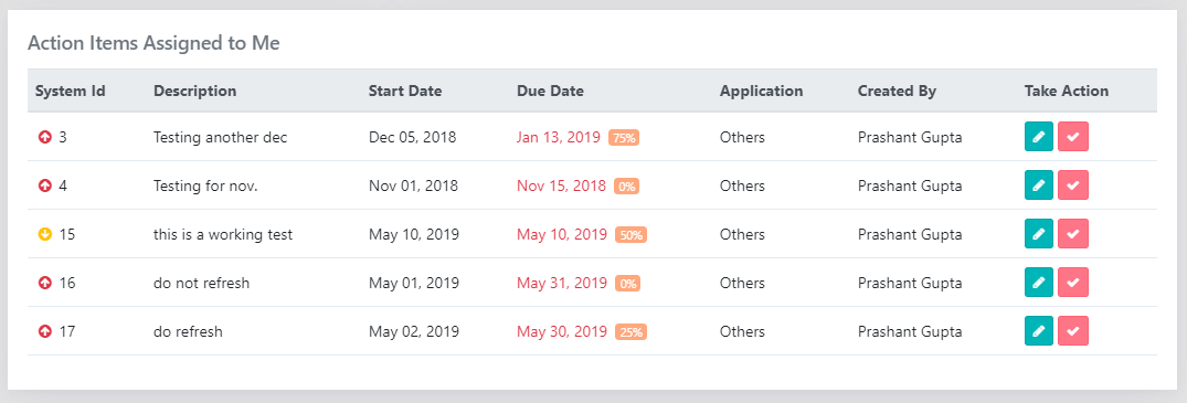 - ID with icon- The action item ID with icons depicting priority