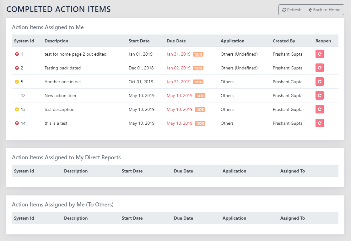 Management Reports >> Action Items