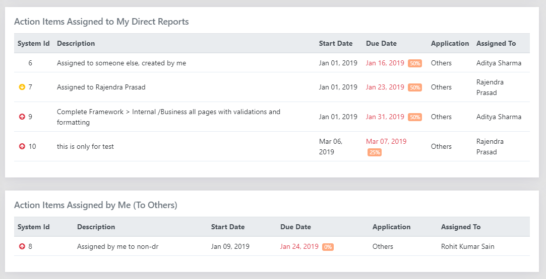 - Action items “Assigned to My Direct Reports” to anyone else, as shown in Figure 117: Action Items assigned by Me; and