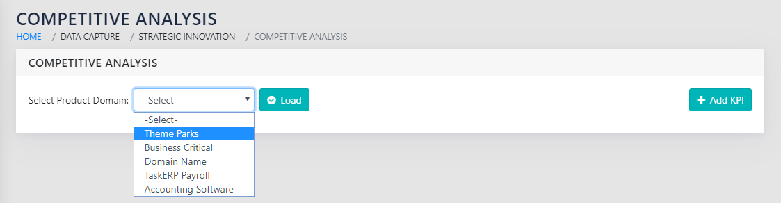 On navigating to the page shown in Figure 144: Select Product Domain for Competitive Analysis, the user selects the product doman from the dropdown and click on Load