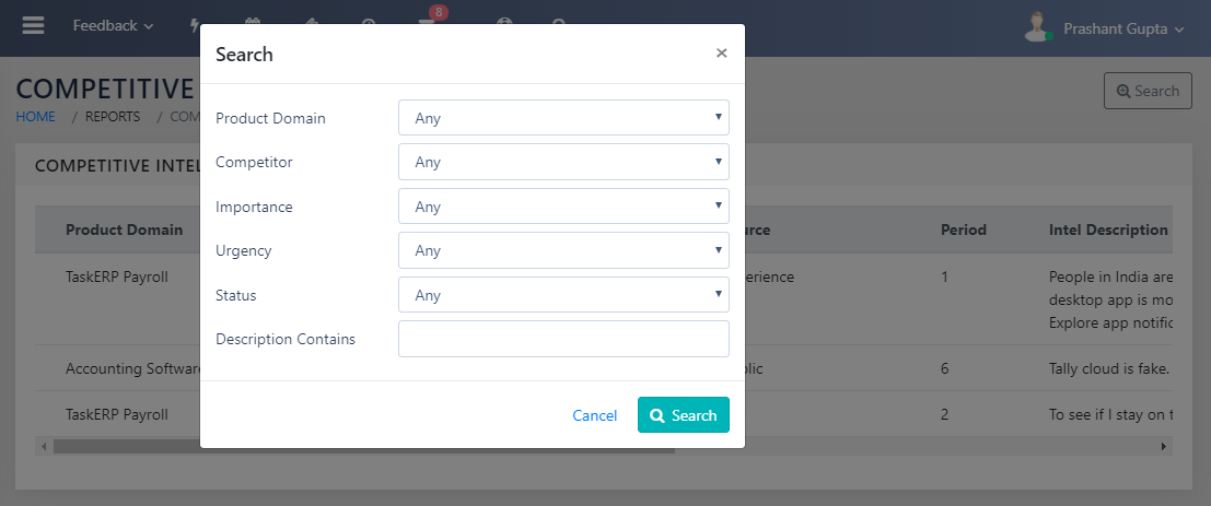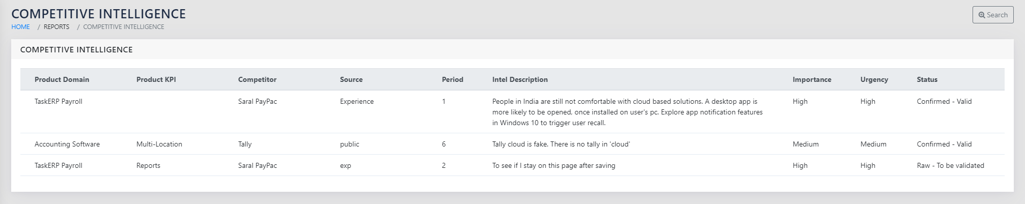Competitive Intelligence module is designed to keep a searchable record of the information gathered from various competitive intel sources.