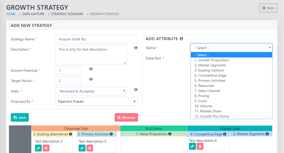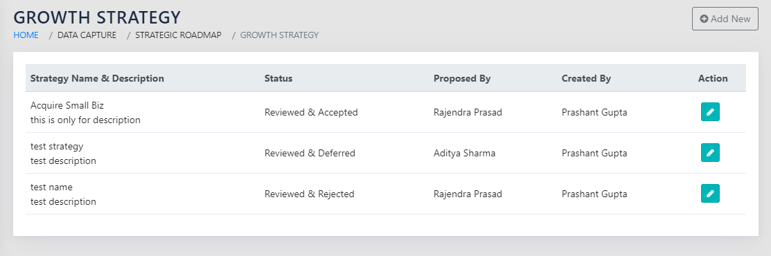 On navigating to the page shown in Figure 104: Identified Growth Strategies, the user sees all growth strategies identifies by them