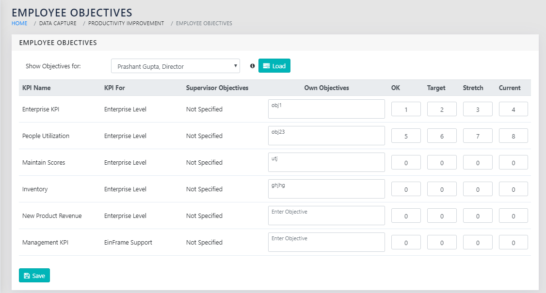 Data Capture >> Productivity Improvement >> Employee Objectives