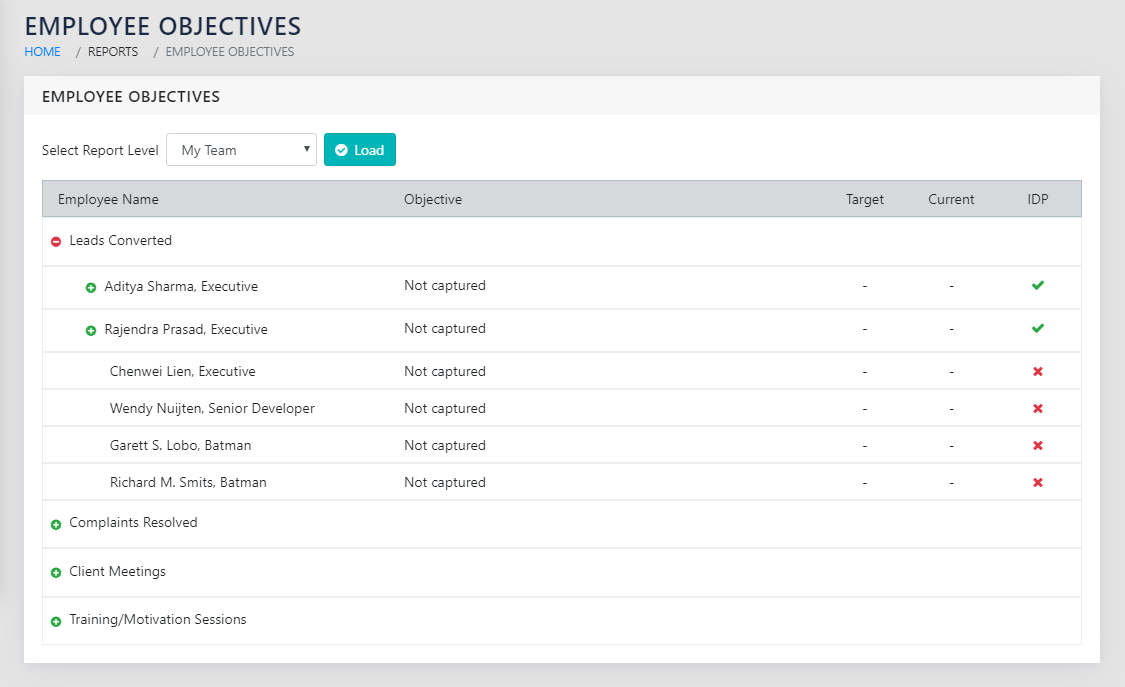 Management Reports >> Employee Objectives