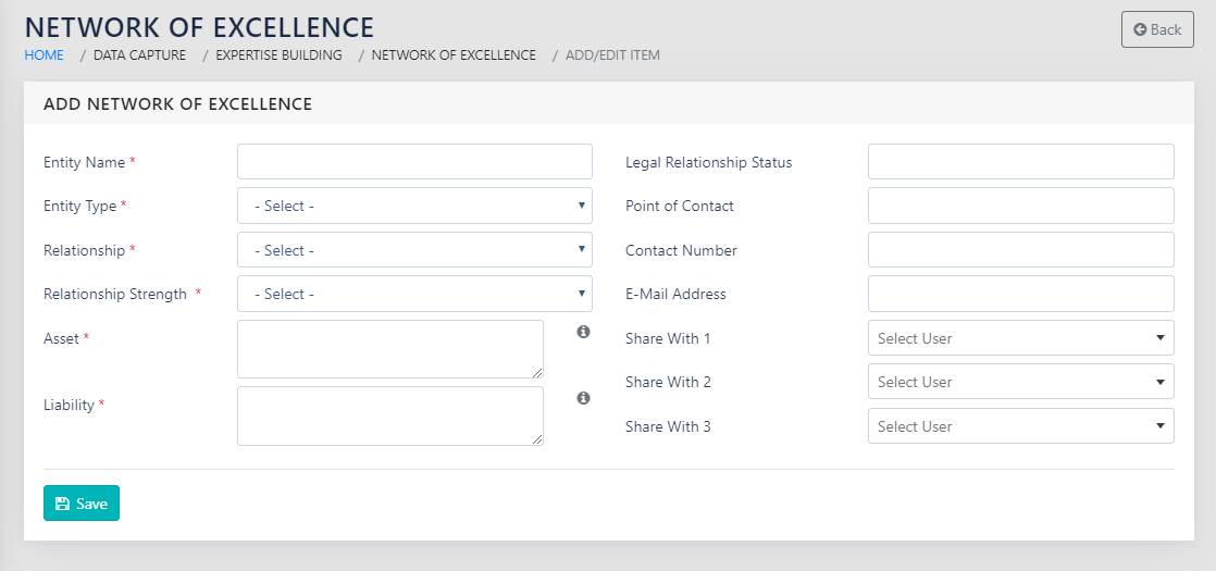 - Share with (Up to 3)- Names of Employees- Since the NOE entities can sometimes be sensitive, up to 3 employees can be added for each NOE entity, who will have access to this entry. BU head/ Deputy Head and the Admins will always have access.