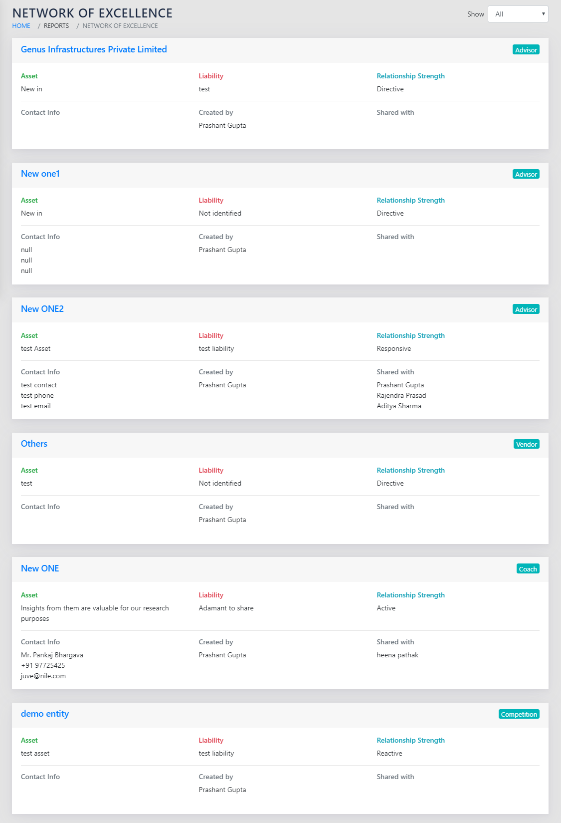 - Network Type- Dropdown- The network type can be selected from the options Advisors/Consultants/Partners/ Contractors/Vendors